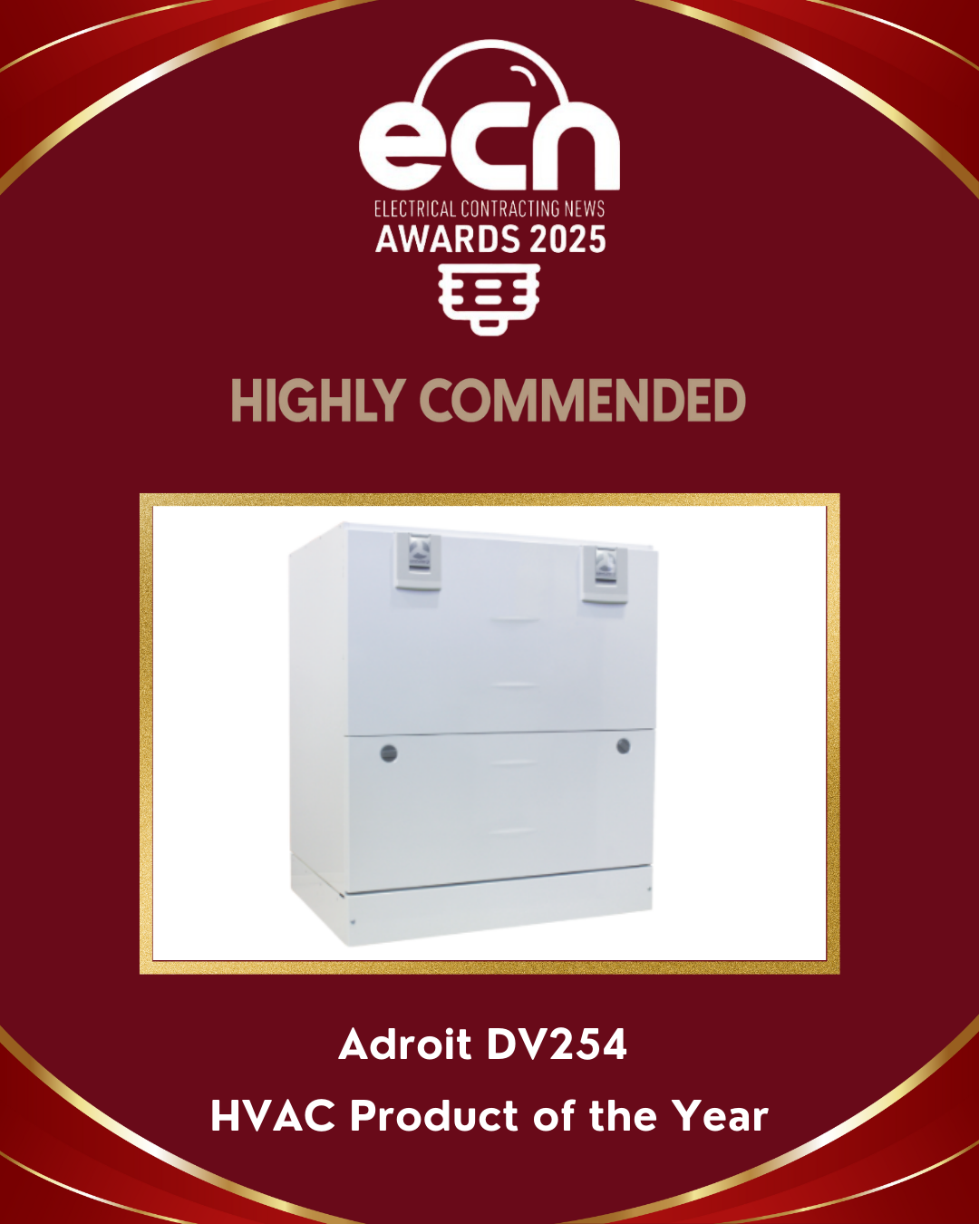 We are also pleased to announce that the Adroit DV254 MVHR was Highly Commended in the HVAC Product of the Year category at the ECN Awards.